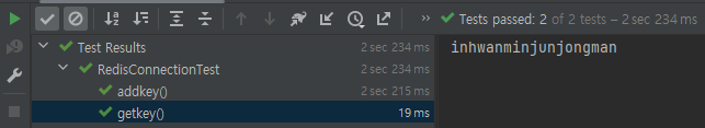 - 정상 연동 시 addkey() 함수에서 지정한 값이 콘솔에 출력되며, Redis Server에서도 해당 key 값을 조회 할 수 있다.